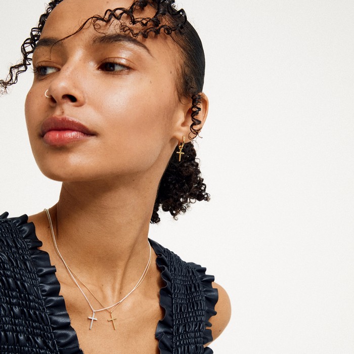 Ett silverpläterat halsband med ett vackert korshänge, från Pilgrim.