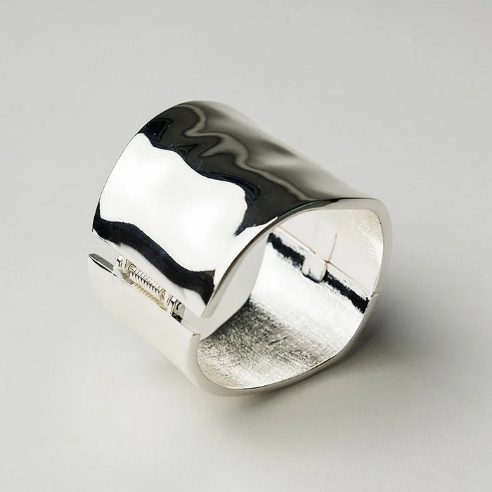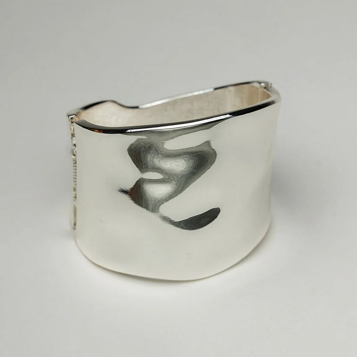 Höj vilken outfit som helst med denna djärva och eleganta accessoar. Styla armbandet över en skjorta, eller bär det tillsammans med flera armband. En bred, solid silvermanschett erbjuder en minimalistisk men kraftfull stil.