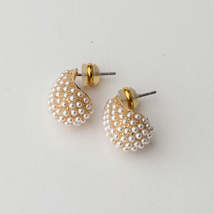 Vackra, droppfärgade pärlörhängen, från det västkustbaserade smyckesmärket BOW19 Details.