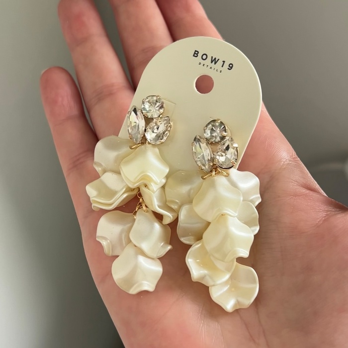 Bow19 Details - Leaf Stone Earrings Offwhite