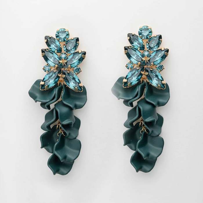 Bow19 Details - Leaf Stora Kristallörhängen i Mörk Grönt
