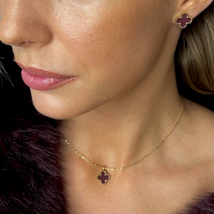 BUD TO ROSE - Clover Enamel Earring Wine/Gold