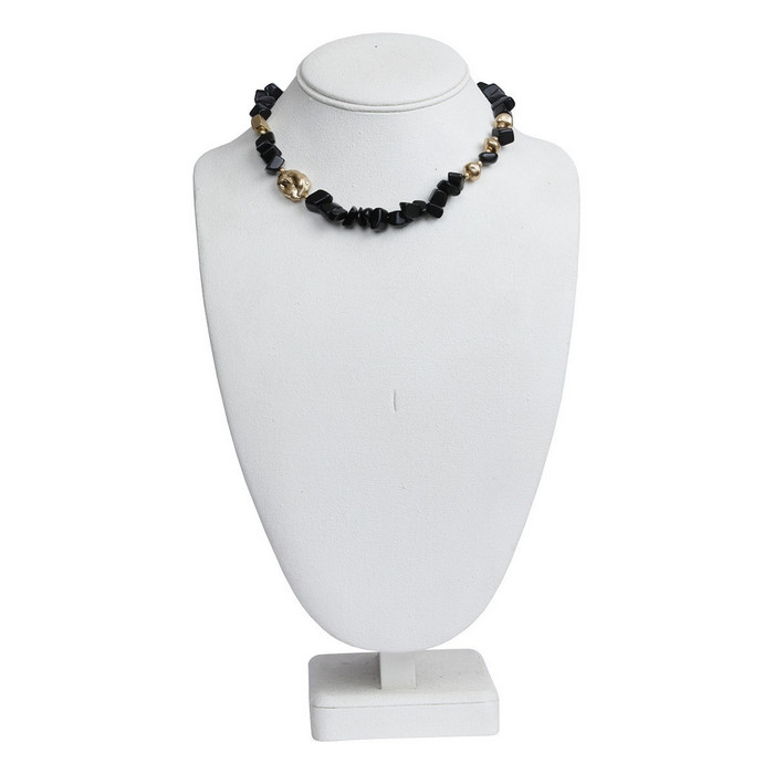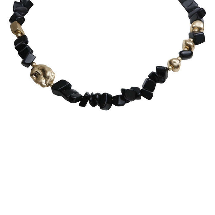 Ett vackert halsband med svarta stenar och guldfärgade detaljer, från Moshi.