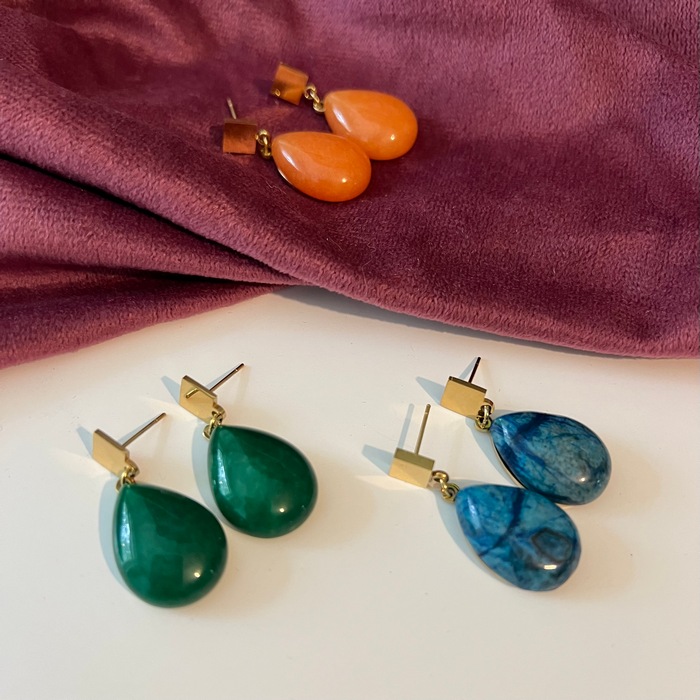 Ett par örhängen i oranget med detaljer i guldpläterad mässing, från Moshi.