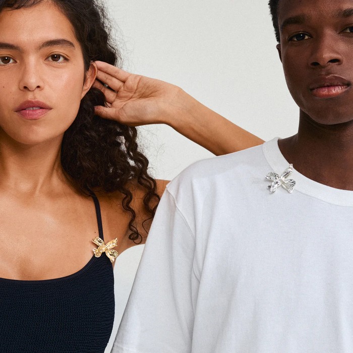 Broscher är något som vi ser mer och mer av nu. Här är en vacker, silverfärgad blombrosch, från den danska designern Pilgrim.