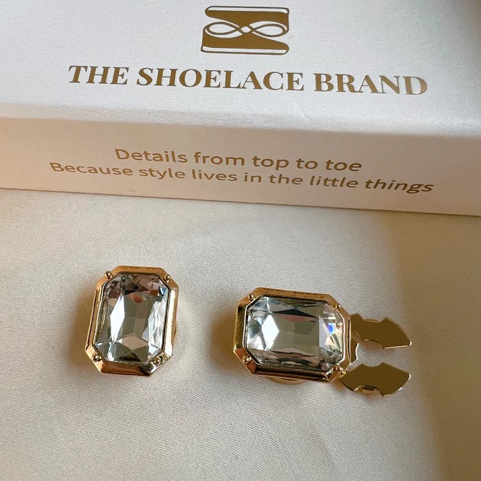 The ShoeLace Brand - Emma – White Crystal Rectangle Button Charm Gold