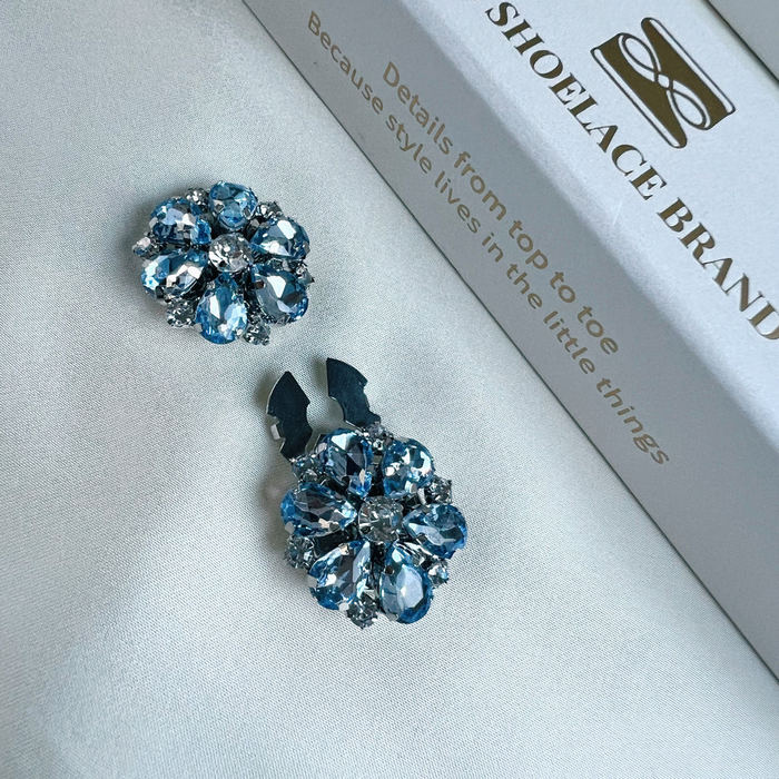 The ShoeLace Brand - Hollie – Light Blue & White Flower Button Charm Silver