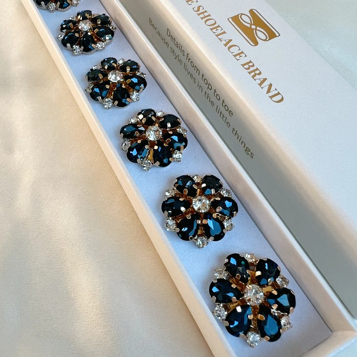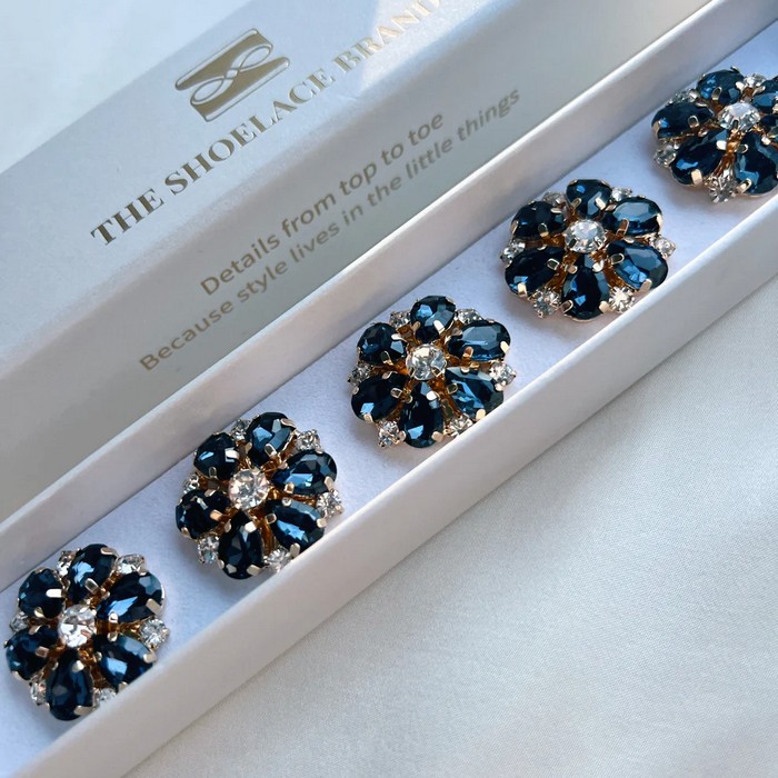 The ShoeLace Brand - Isabelle – Navy & White Flower Button Charm Gold