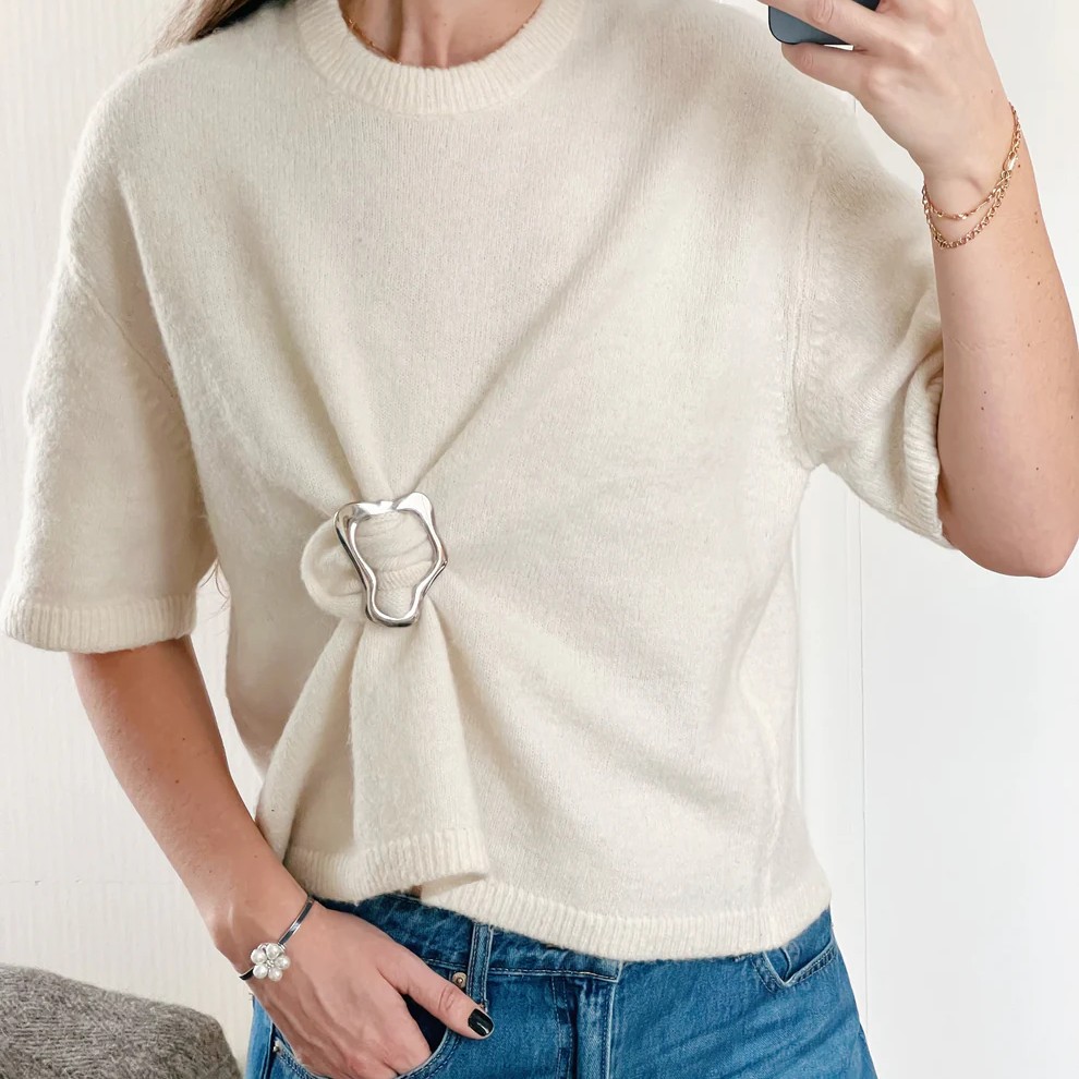 Decor Bucle â Universal Silver Ă€r ett asymmetriskt, ovalt spĂ€nne i silverfinish som lĂ„ter dig skapa form, drapering och midja â utan att sy eller förĂ€ndra plagget permanent.