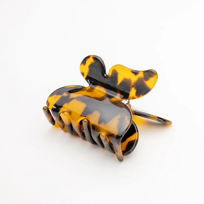En vacker fjärilshårklämma i cellulosaacetat - ett miljövänligt material som är biologiskt nedbrytbart. Hårklämman är trendigt Leomönstrad.