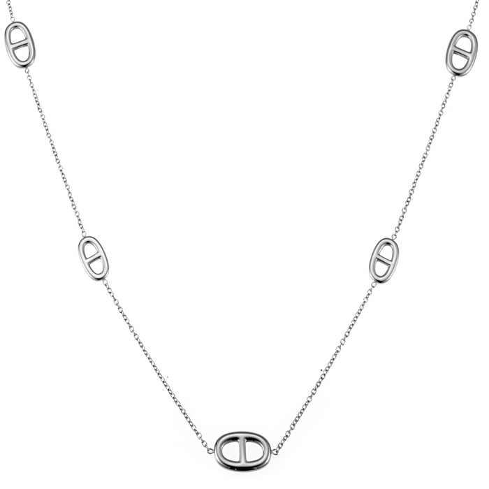 Stilrent halsband med ovala ankarringar som ger en modern och maritim inspiration. Superfint att ha två varv!