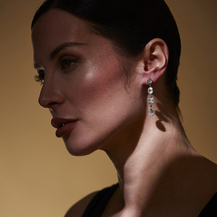 Här är ett par silverfärgade, gnistrande, handgjorda festörhängen i en lättburen storlek.