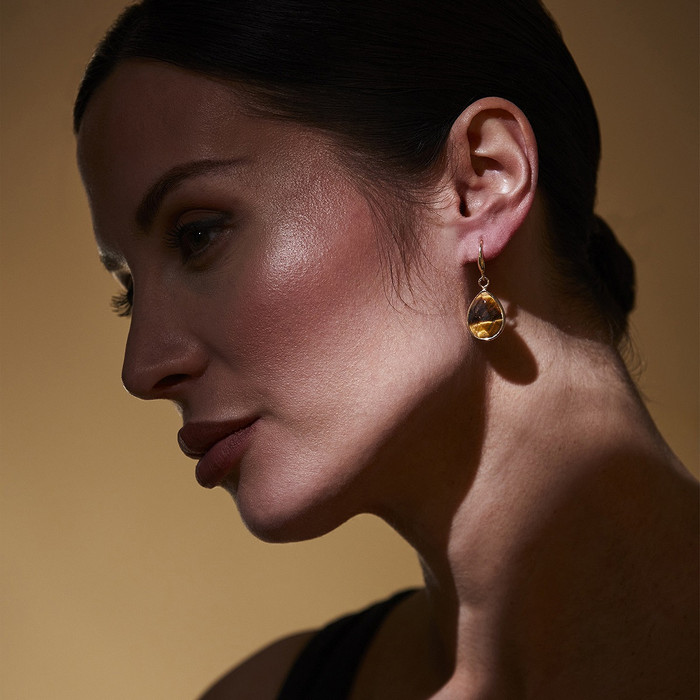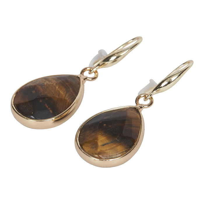 Ett par söta, droppformade örhängen med Tigeröga och guldpläterad mässing.